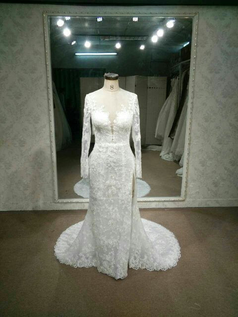 Cette robe de mariée en dentelle à manches longues est une #réplique que nous avons réalisée pour une mariée. Le #style est maintenant disponible tel qu'illustré ou avec toutes les modifications de #design.