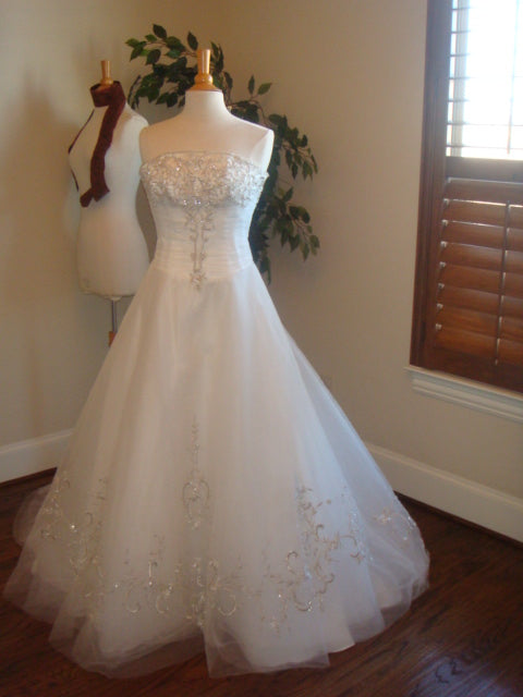 Style D2012 - robe de mariée sans bretelles trapèze petite robe de mariée formelle en organza