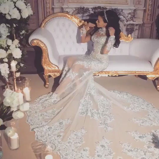 This swarovski crystal beaded long sleeve illusion neckline wedding gown that is very popular all over the internet. We have had many #brides ask for pricing on this #weddingdress. So we decided to place it in our #weddingdress catalog for consideration.