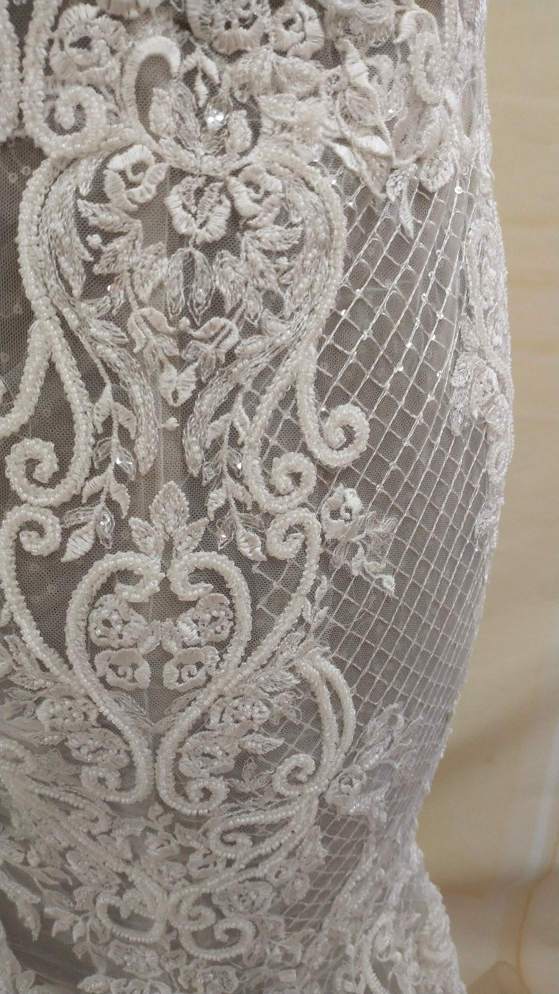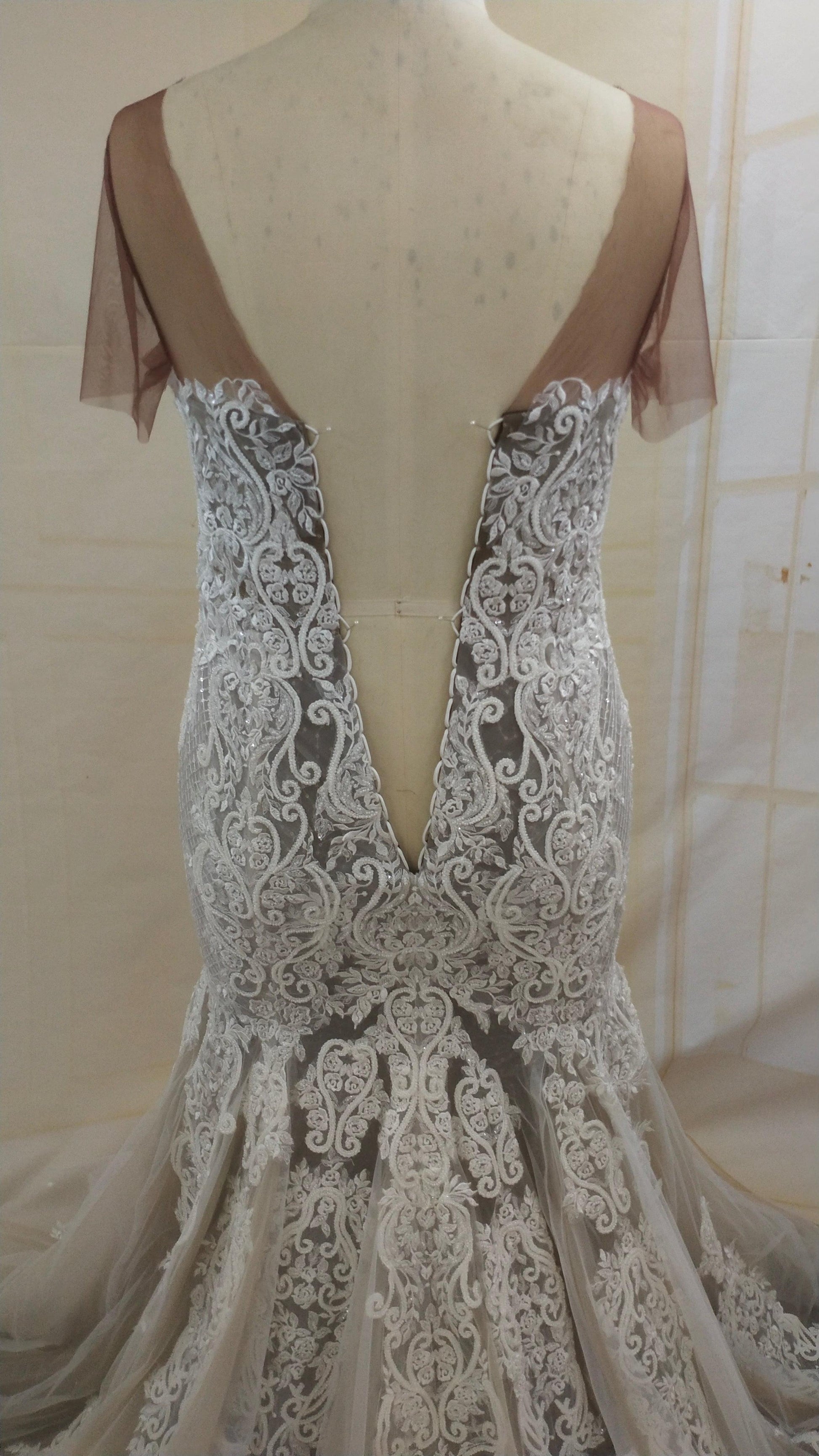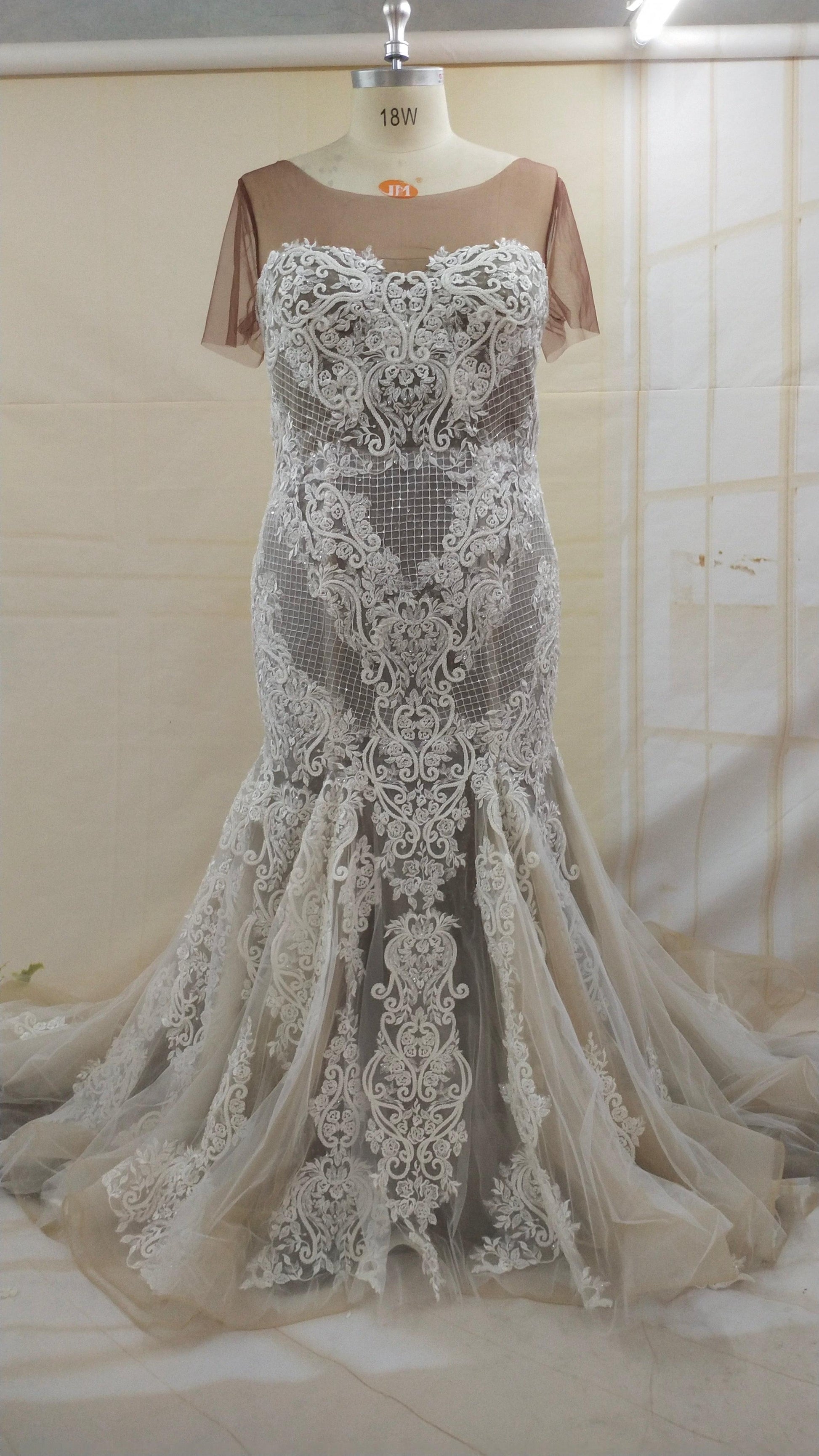 We have this plus size embroidered wedding gown with illusion neckline that can be customized however you need.