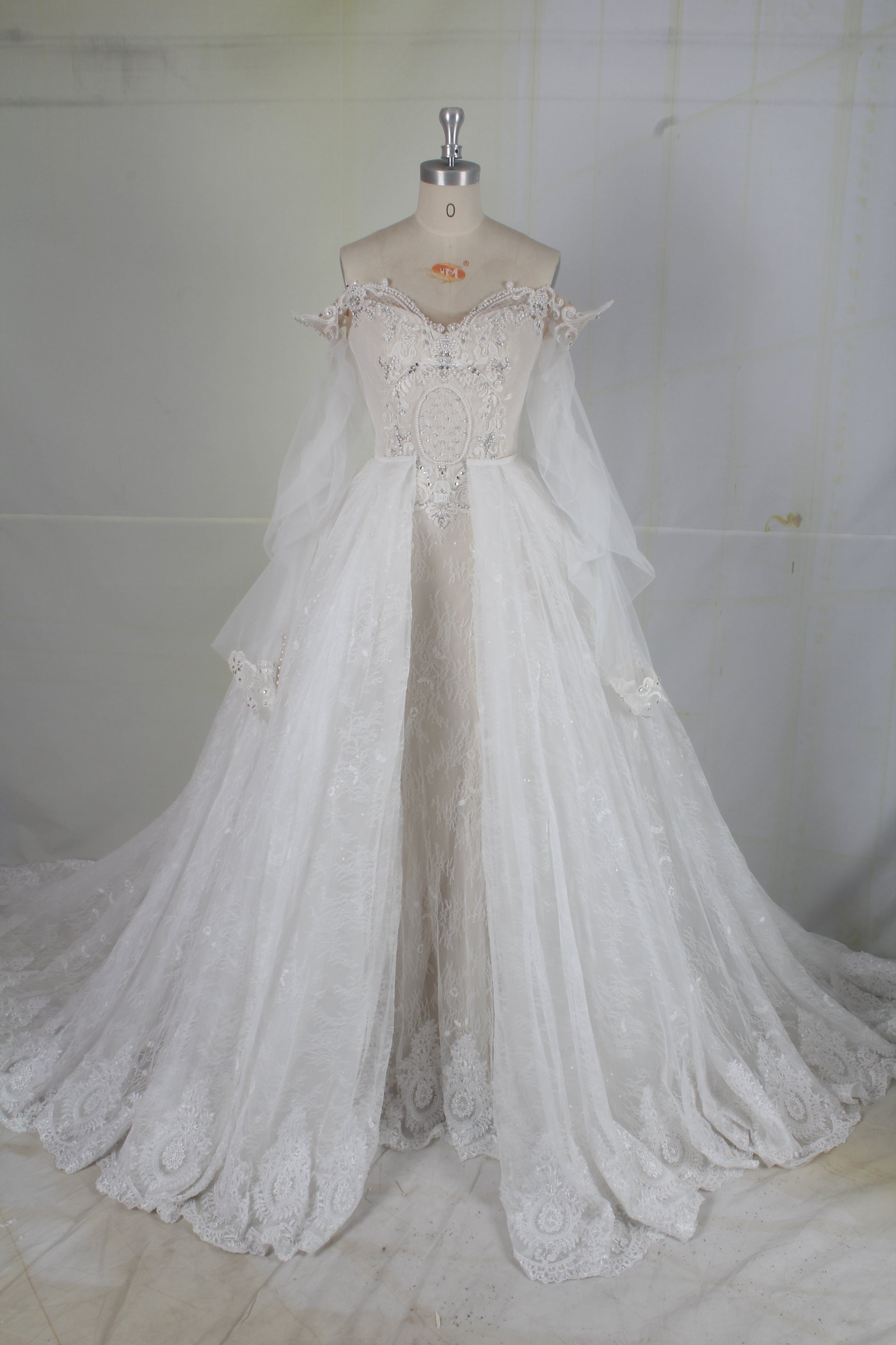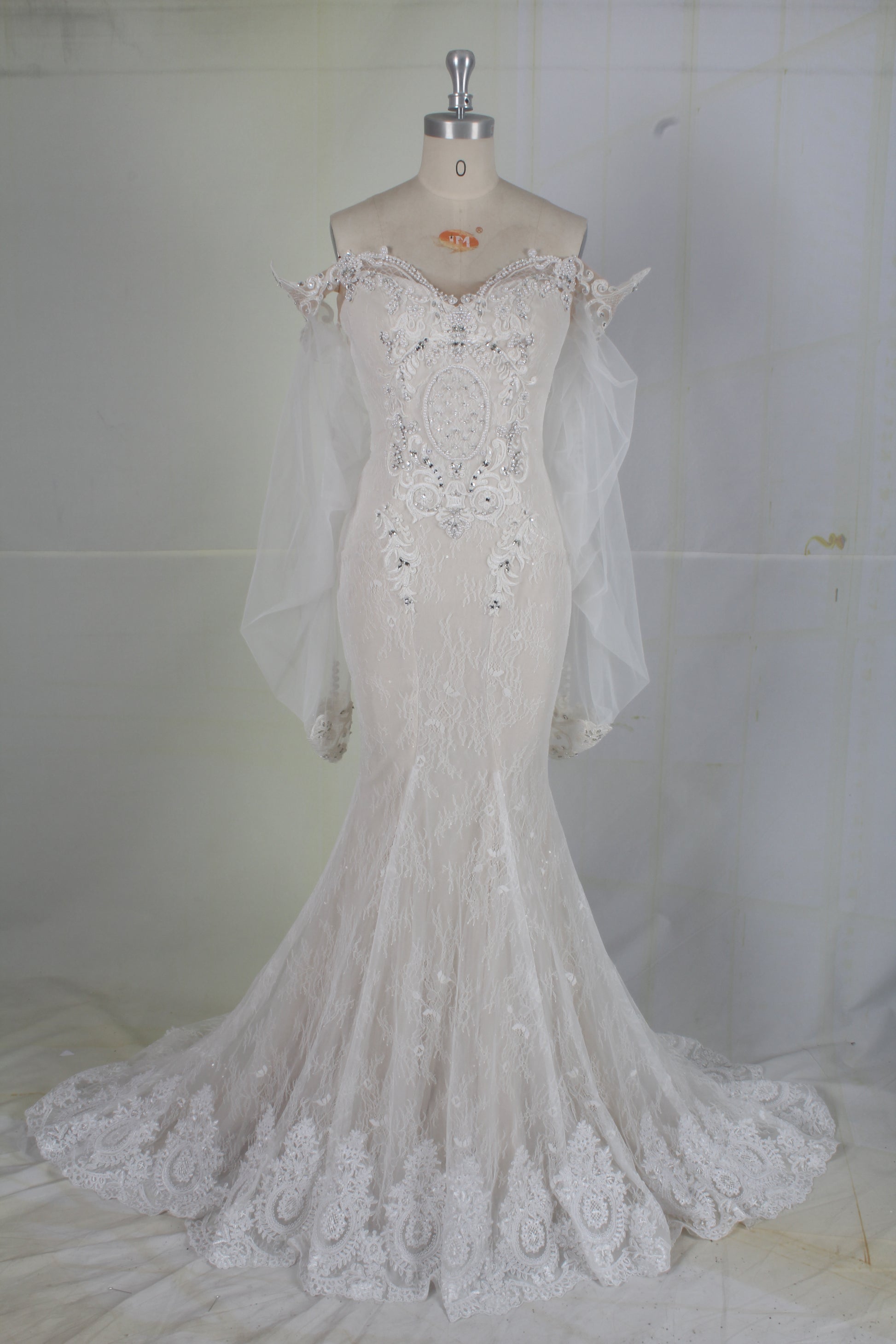 C2023-Hafizi - Off the shoulder cuff bishop long sleeve wedding gown