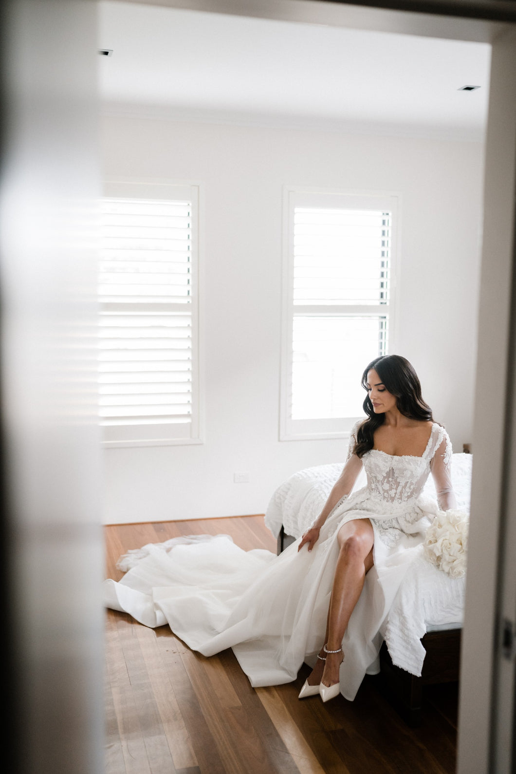 Introducing C2023-LS16K, an exquisite wedding dress for the most special occasion. This piece features sheer long sleeves, a graceful open neckline, and a daring side split. Finished with a voluminous train, this elegant design exudes timeless sophistication.