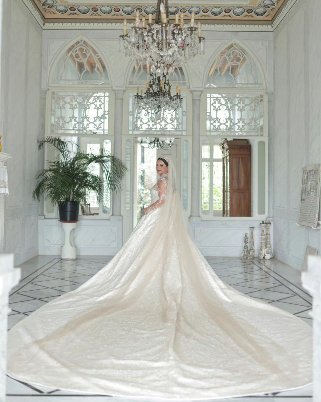 C2023-IN52B - sheer long sleeve illusion neckline with high collar wedding dress ballgown