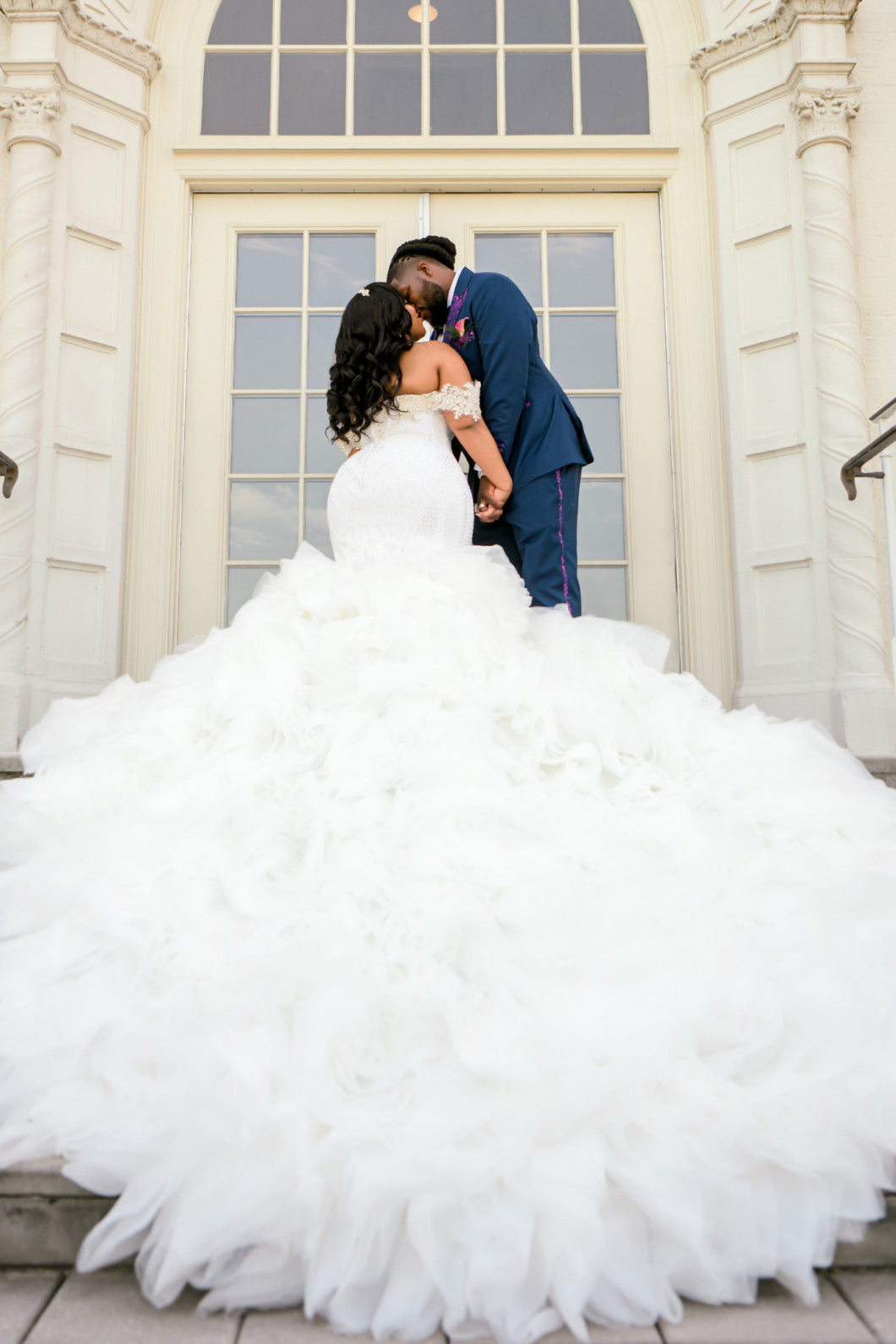 This impeccably designed beaded off the shoulder plus size fit-and-flare wedding gown is guaranteed to turn heads. Crafted from quality materials and carefully beaded for a eye-catching finish, this gown adds an air of sophistication and grace to your special day. Subtle yet statement-making, it is the perfect choice for a memorable wedding.