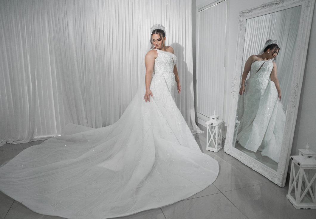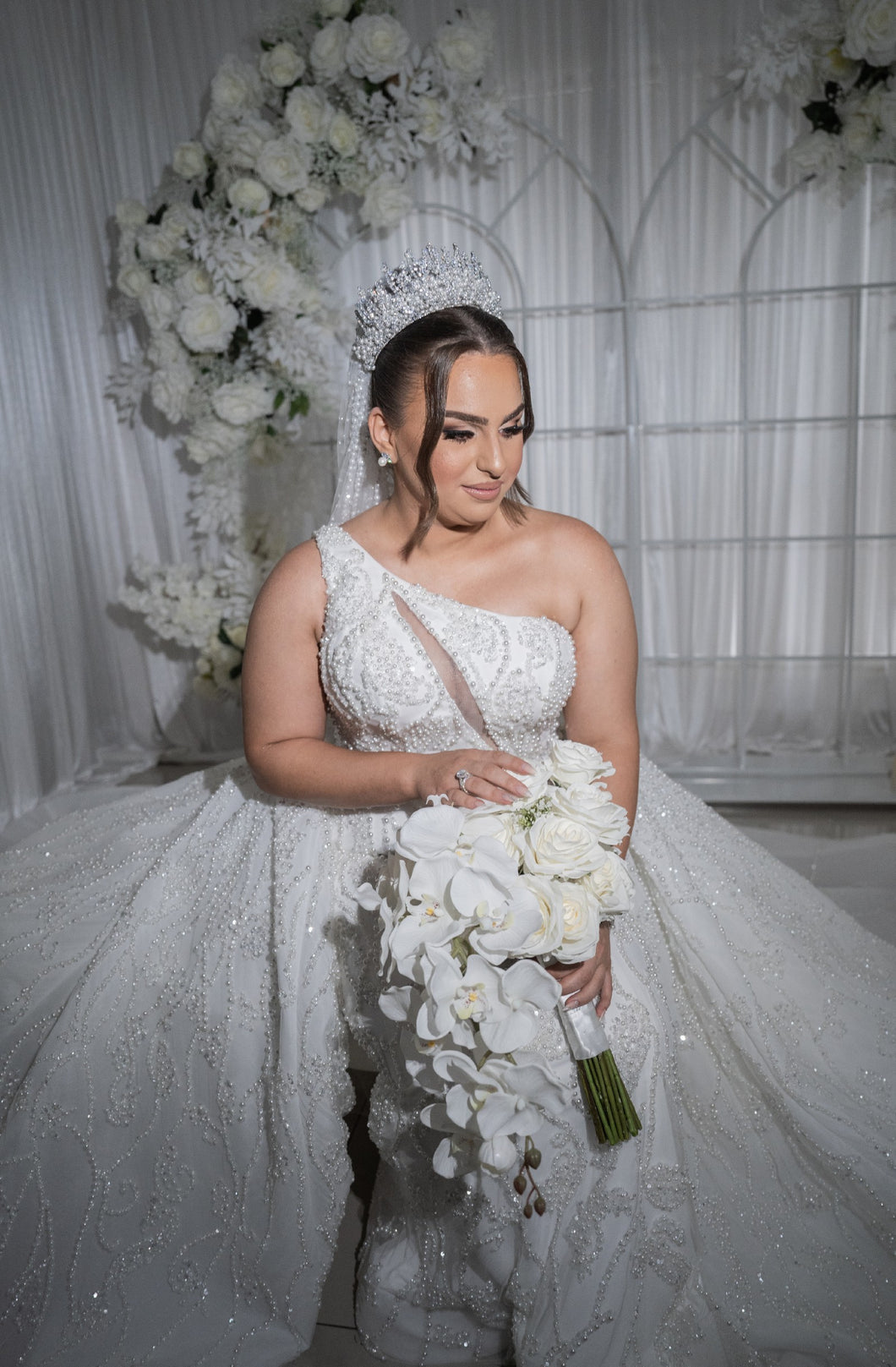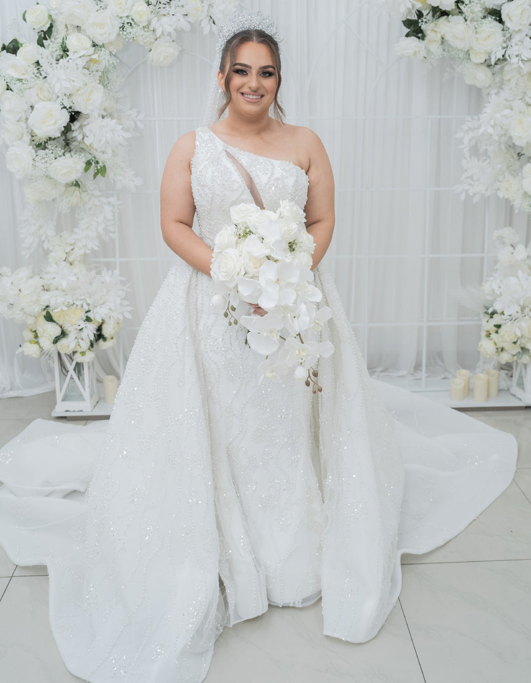 This elegant and exclusive C2023-OST4 wedding ball gown dress from our luxury collection will add a sophisticated touch to your special day. The exquisite beaded one shoulder dress is adorned with an overskirt for a grandiose finish. An exquisite plus size choice for the modern bride.