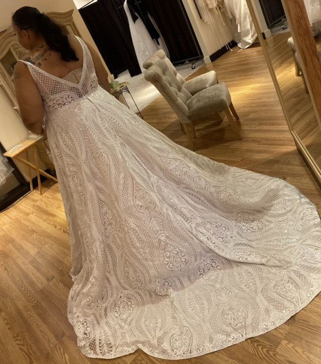 This beaded plus size lace wedding gown is available as pictured. Or you can request any changes you need to the #design.
