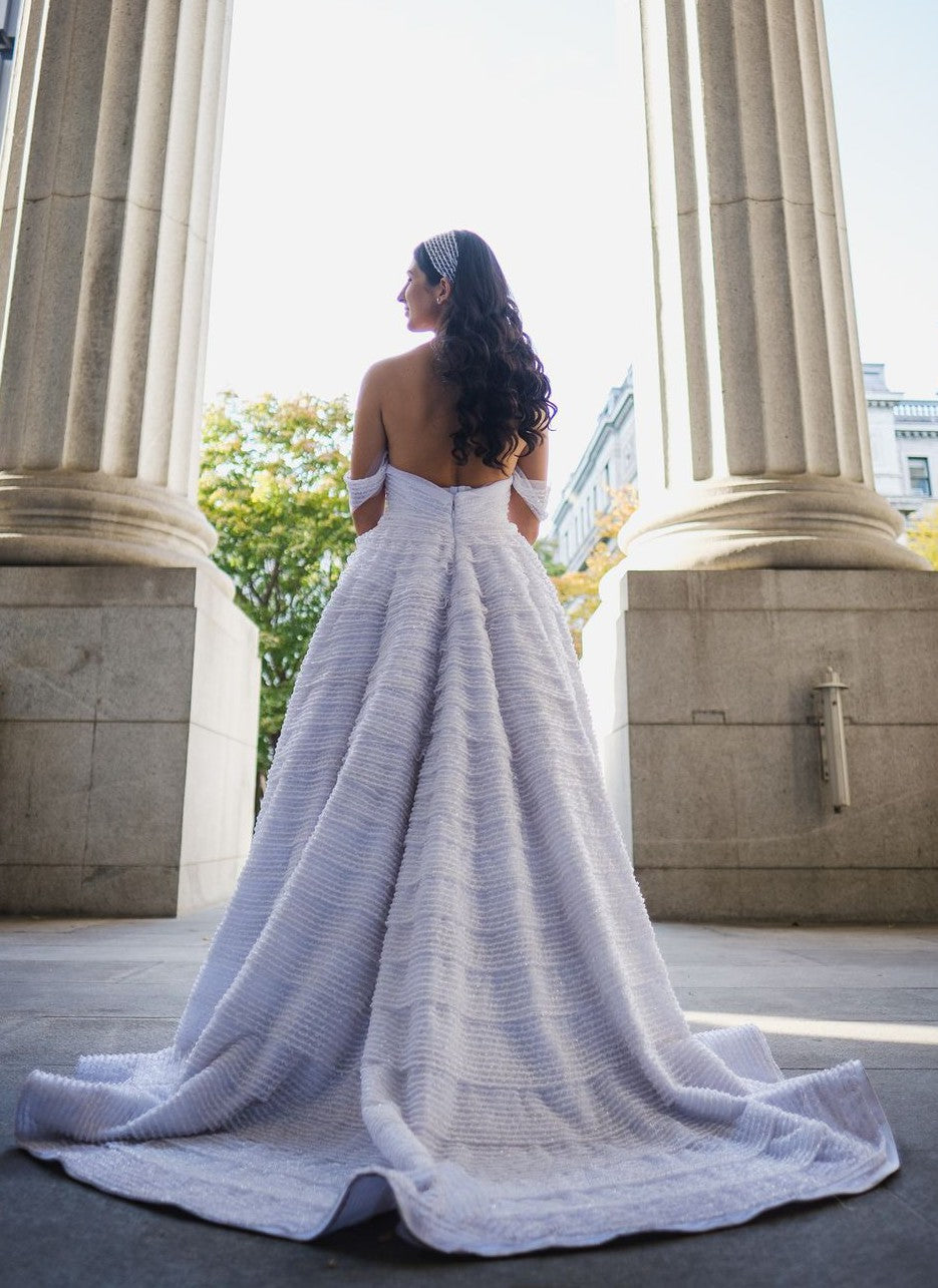 Look like royalty in this exquisite strapless A-line tiered wedding gown from C2023-SA429. The luxurious silhouette drapes elegantly over the body, creating a timeless, yet decidedly modern look. Expertly crafted with exquisite attention to detail, this strapless gown will shimmer and shine with grace on your wedding day.
