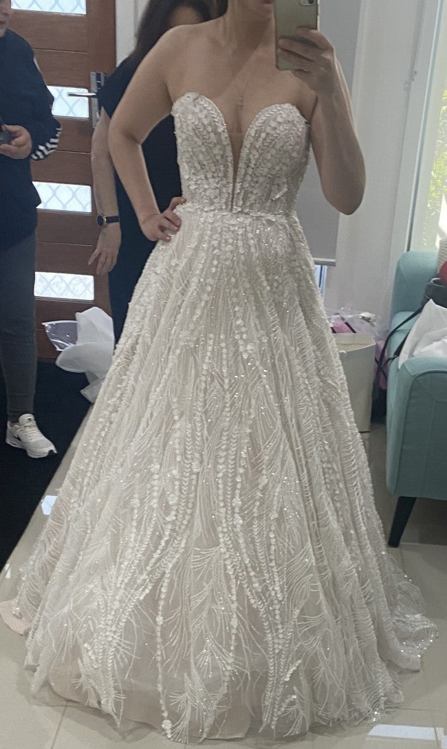 Here is a strapless a-line beaded wedding gown you can request as pictured. or with any #design changes.