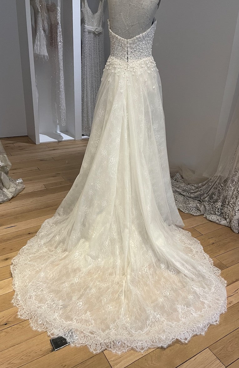 C2023-SBB4 - strapless fitted wedding gown with flowing over skirt