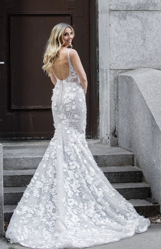 C2023-SBL118 - backless fit-and-flare beaded lace wedding gown