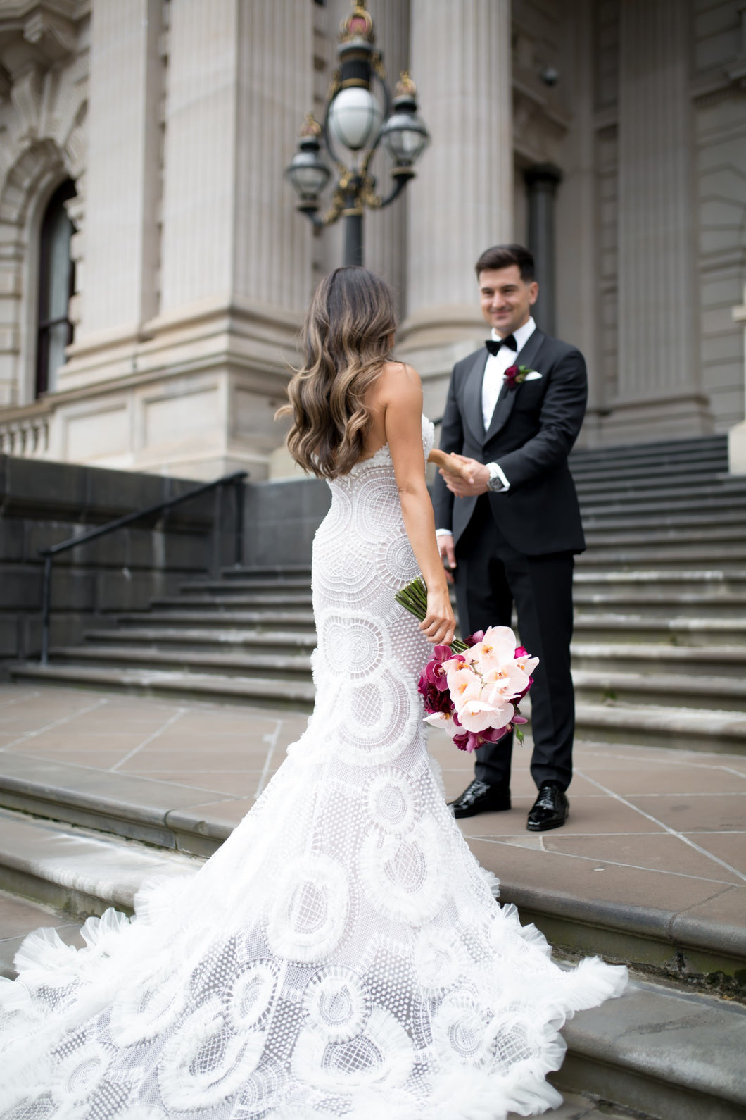 Experience unparalleled elegance in our signature C2023-SE35 strapless sweetheart lace wedding gown. Crafted from intricate floral embroidery adorned on soft tulle, this exquisite gown features a split and train to make a subtle yet lasting impression on your special day. Let this timeless piece greet the eyes of your beloved ones with its sophisticated splendor.