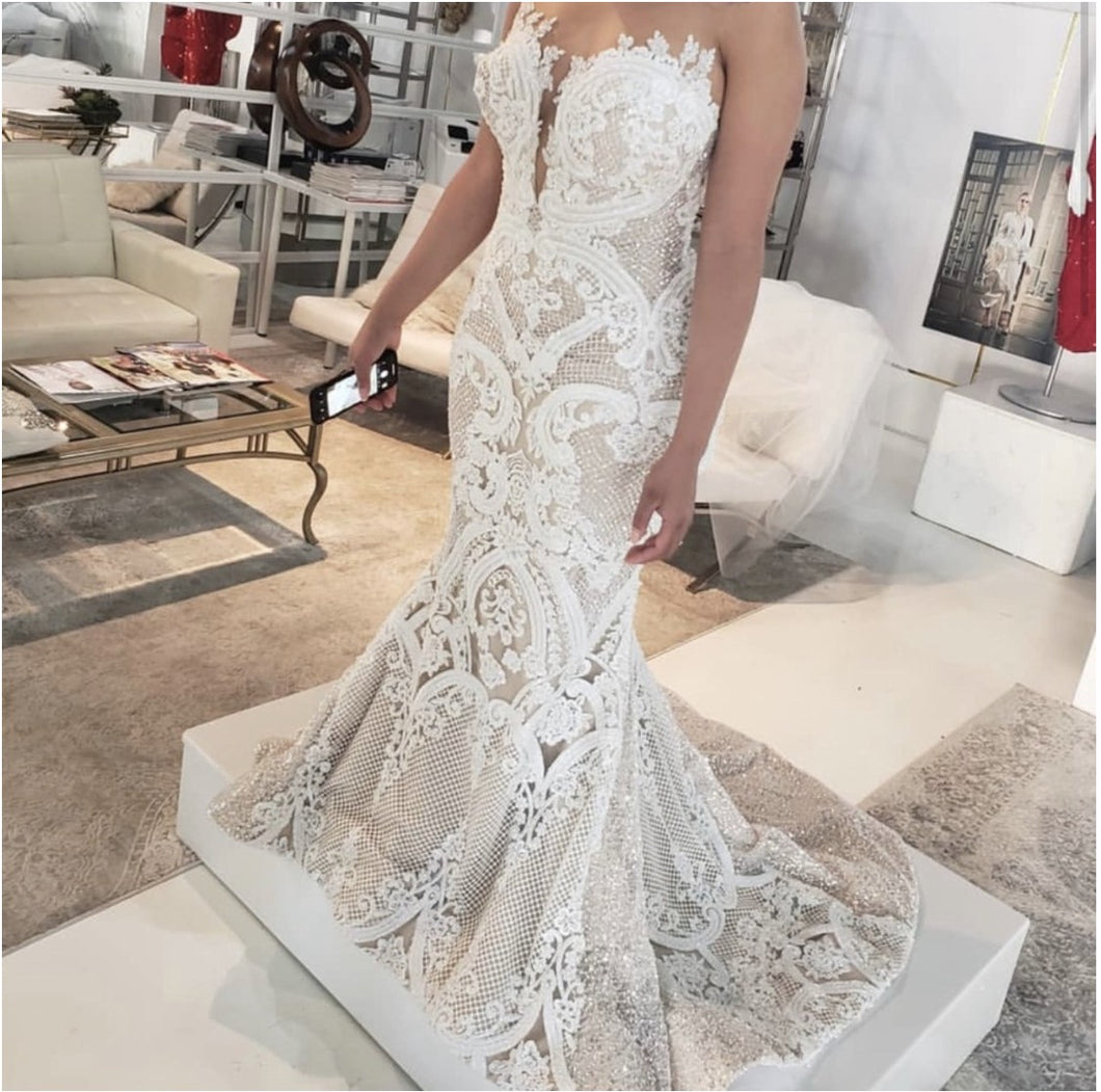 C2023-SF399 - strapless beaded fit-to-flare wedding gown with detachable satin train