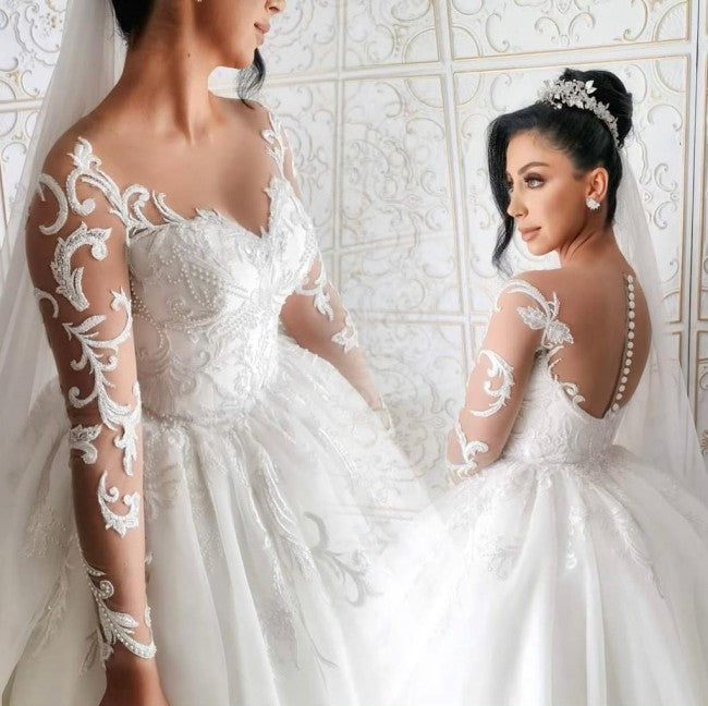 C2023-SLS224 - sheer long sleeve ball gown wedding dress