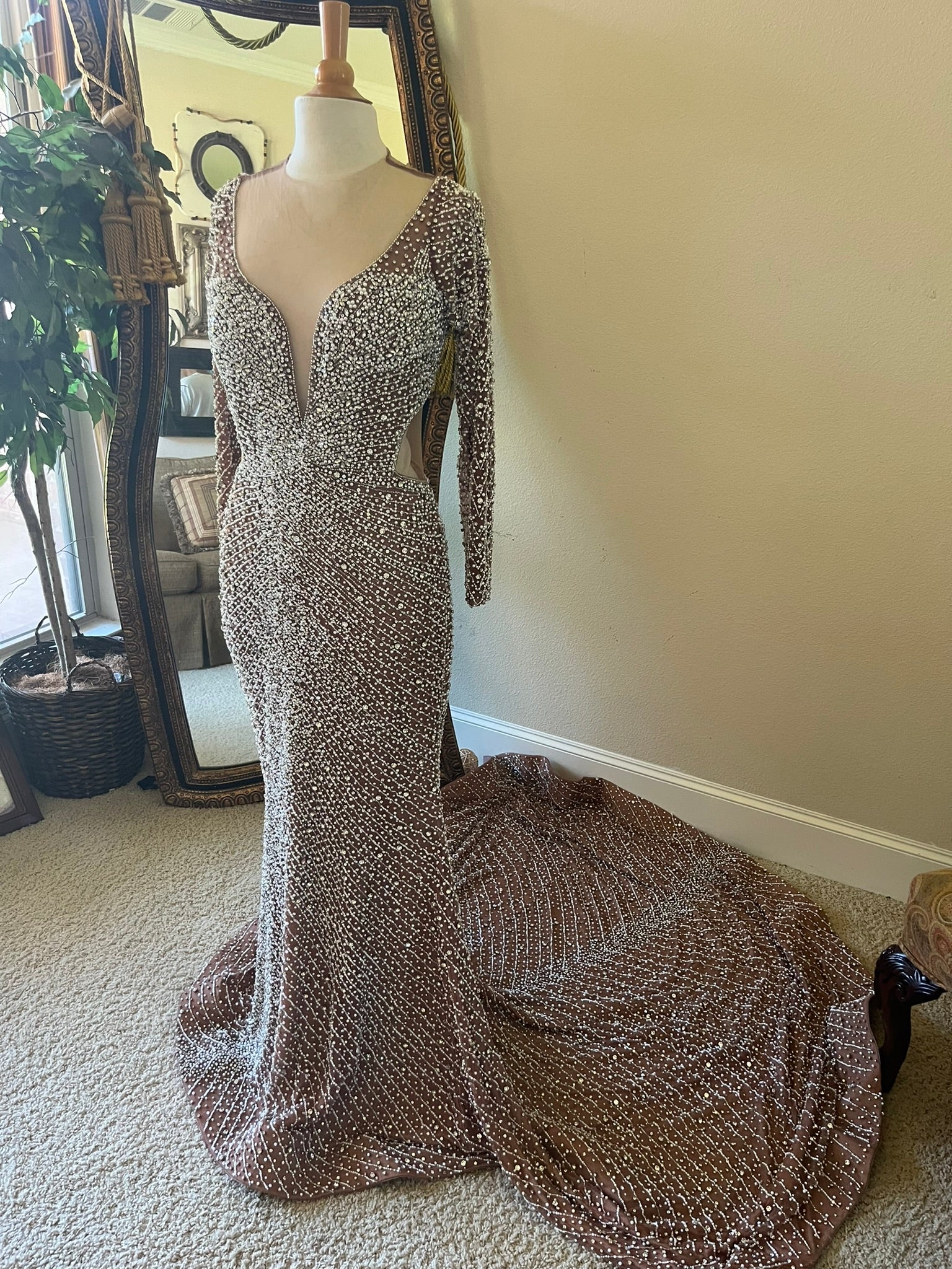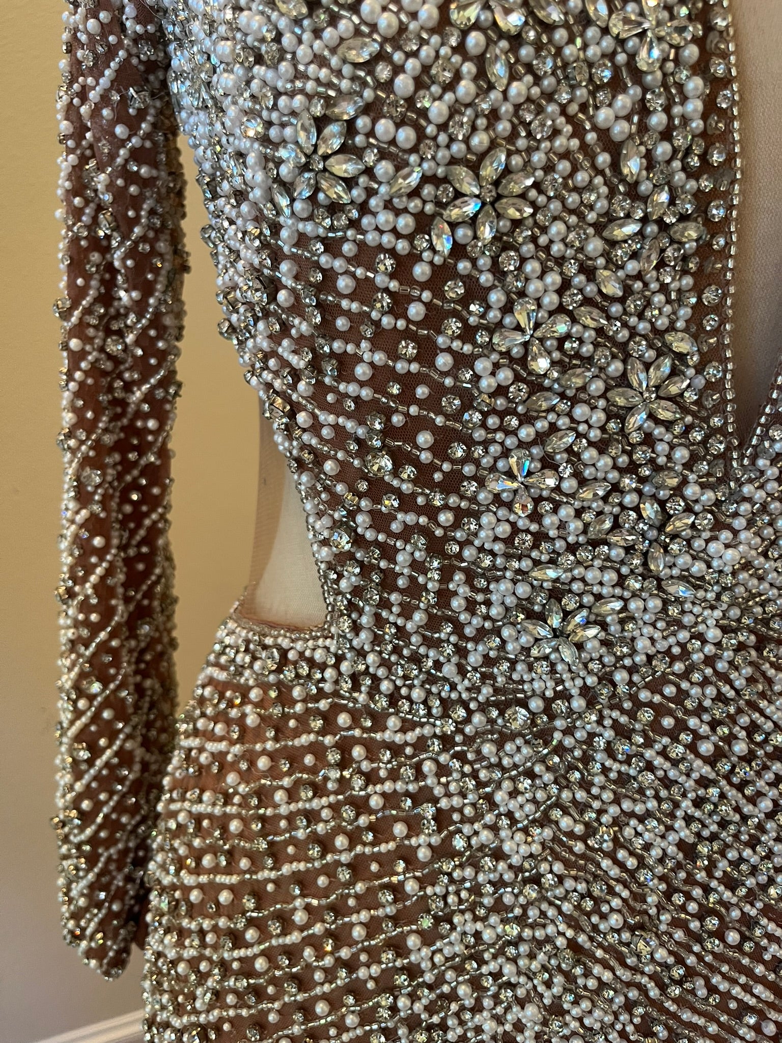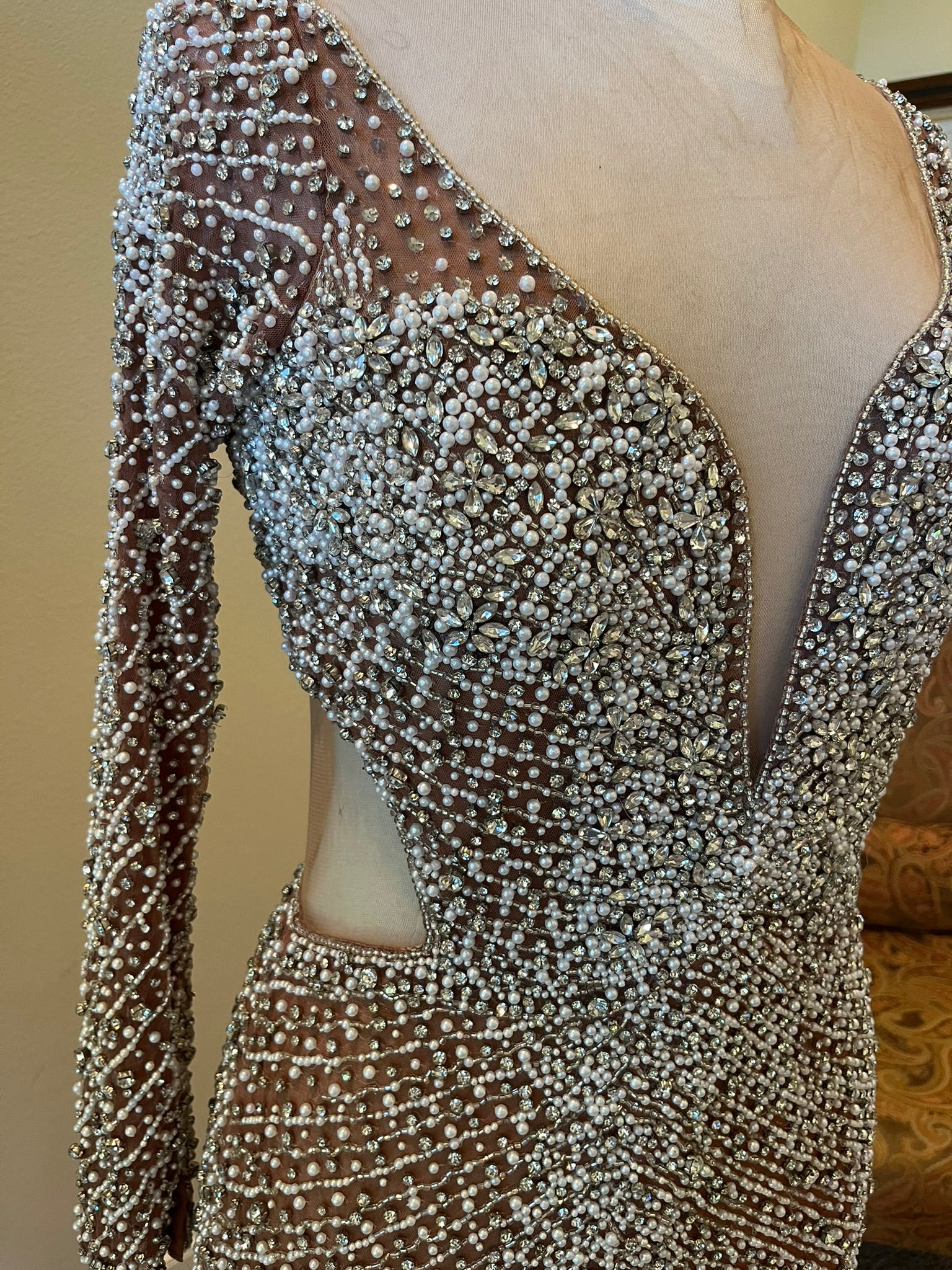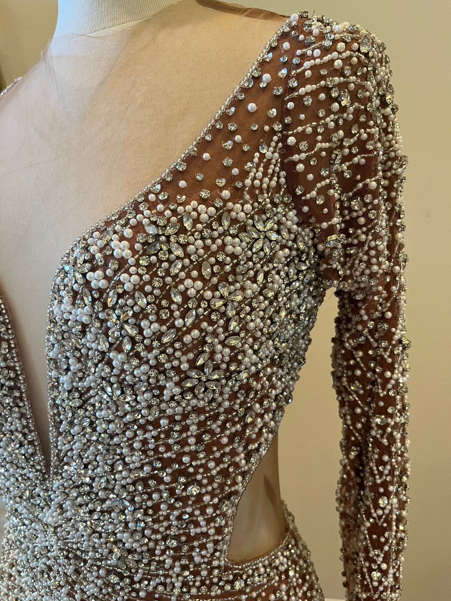 C2023-SWeeksD - Long Sleeve Pageant Gown with Rhinestones & Pearls