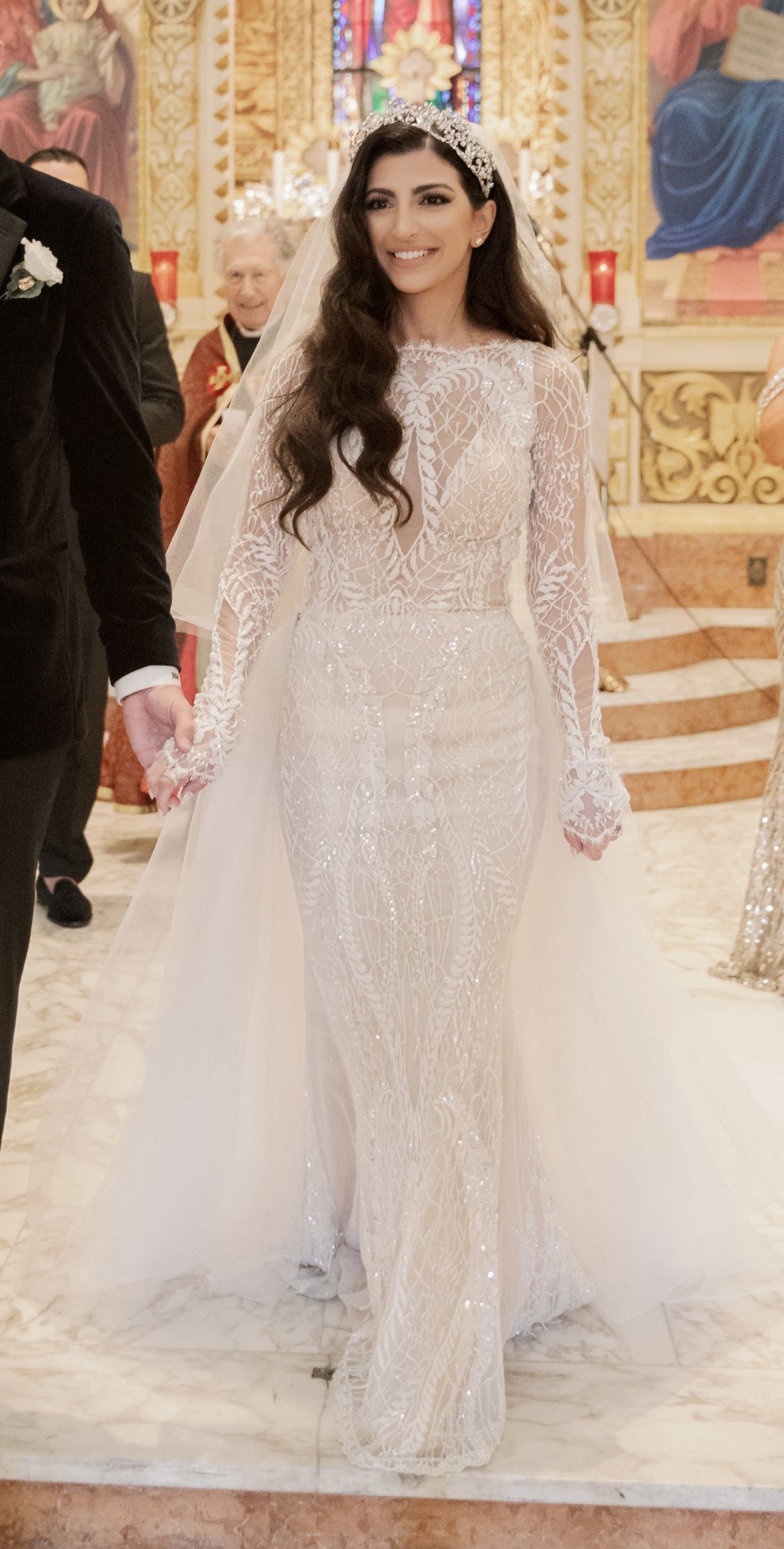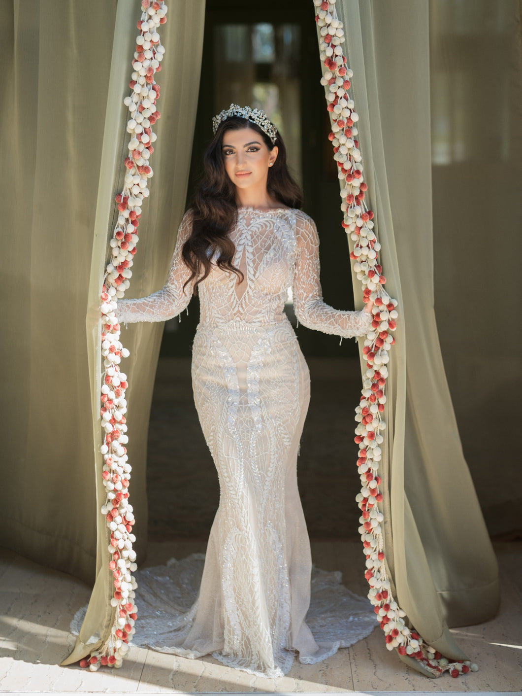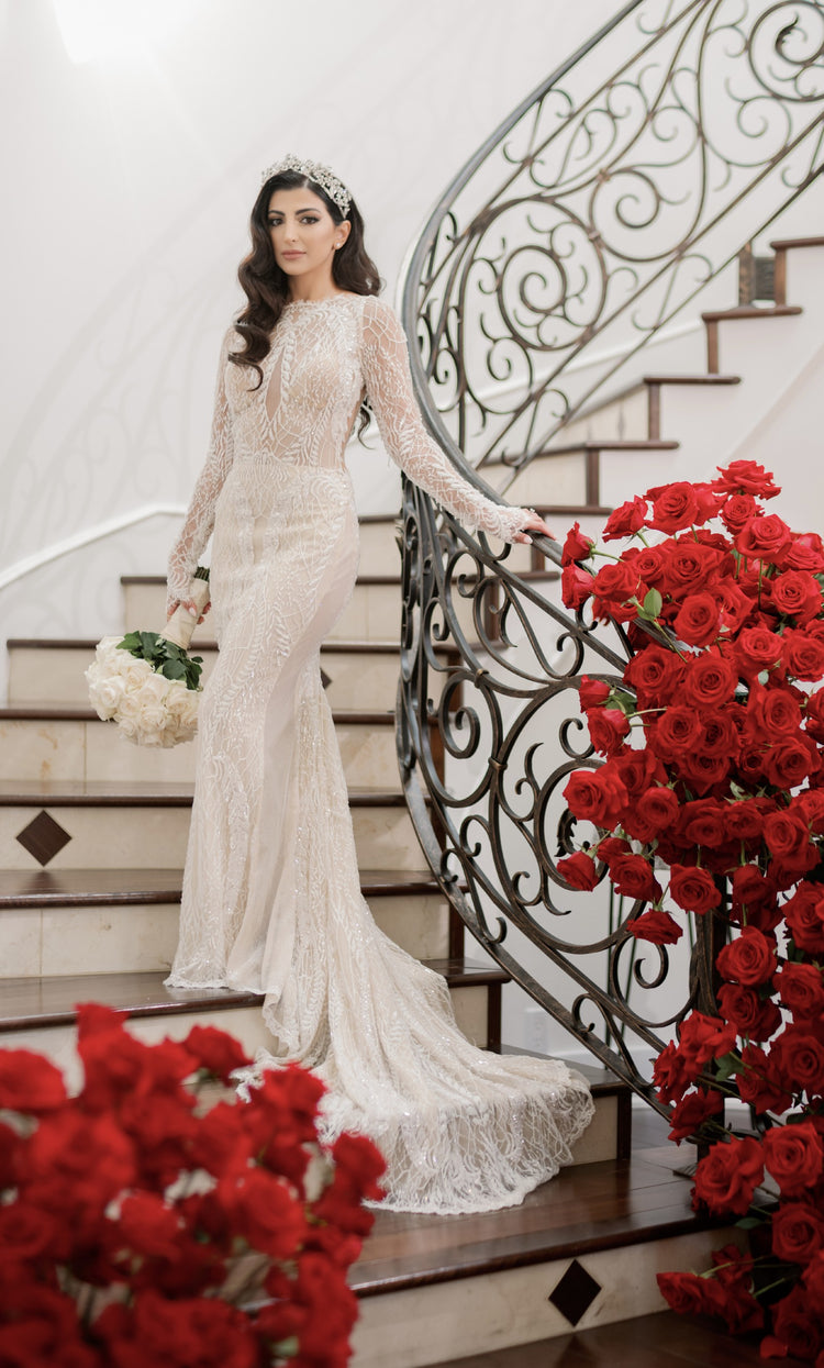 This exquisite backless beaded wedding gown features sheer long sleeves, creating a captivating blend of #elegance and sensuality. With intricate beadwork and a stunning silhouette, this gown will make you feel like a work of art on your #special day. Elevate your #bridal look with this luxurious and exclusive #design.