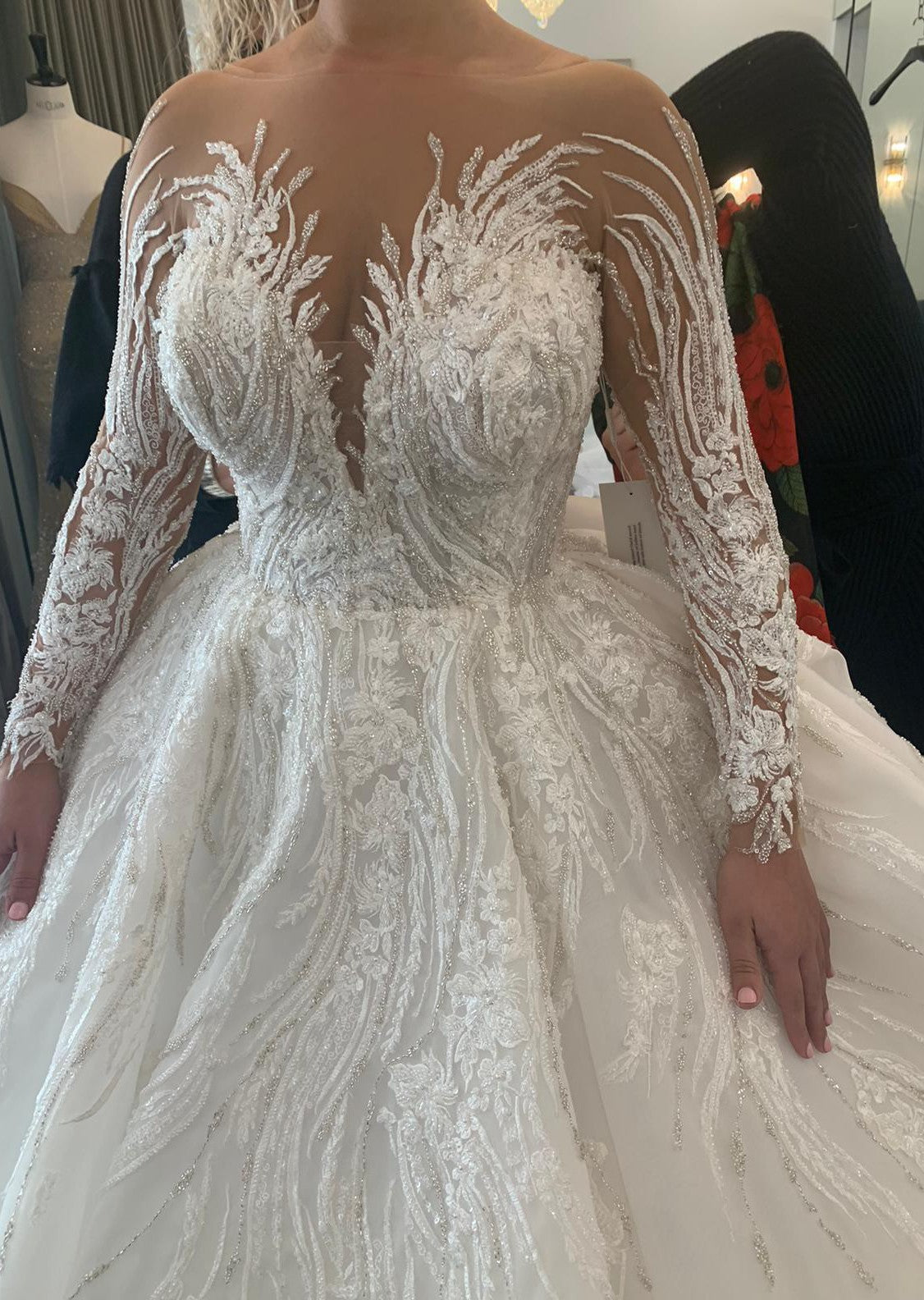 Embody sophistication and grace in our C2024-LS333 wedding dress. This exquisite ball gown features a sheer illusion neckline and long sleeves, adding a touch of elegance to your special #weddingday. Designed to make you feel like a princess, it's the #perfect choice for a luxurious and memorable #wedding.