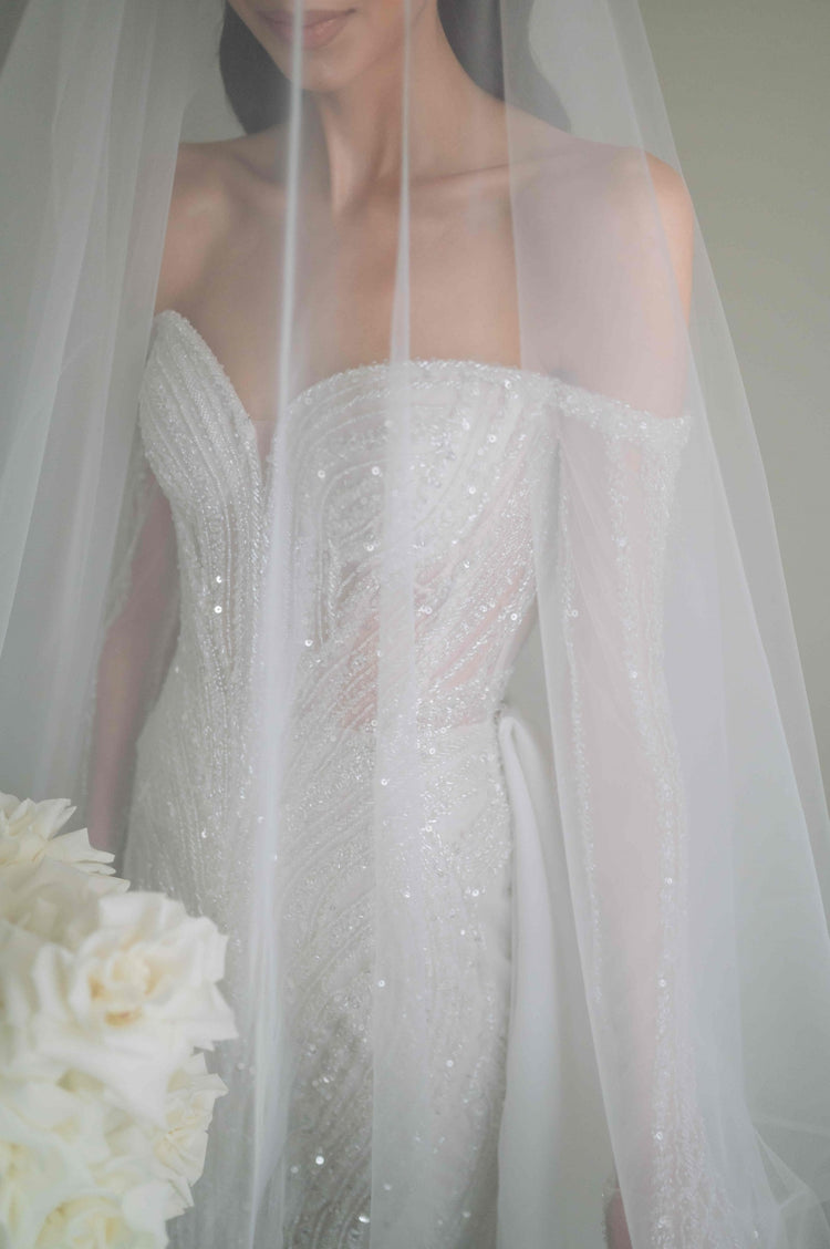 C2024-LS58B - off the shoulder beaded wedding gown with detachable long sleeves