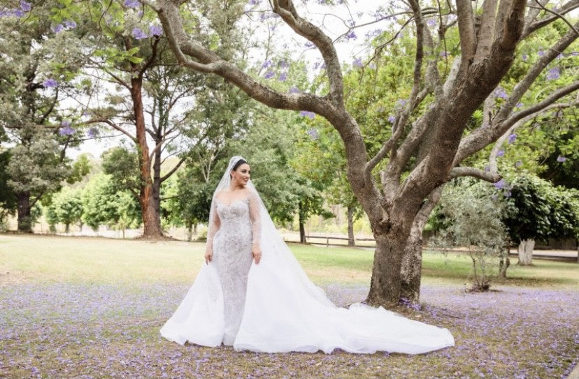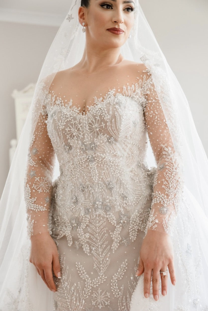 Indulge in pure luxury with our C2024-LS77B crystal beaded wedding gown. The sheer long sleeves and illusion neckline add an alluring touch, while the intricate beading adds a touch of elegance. Step into this gown and feel like a masterpiece walking down the aisle.