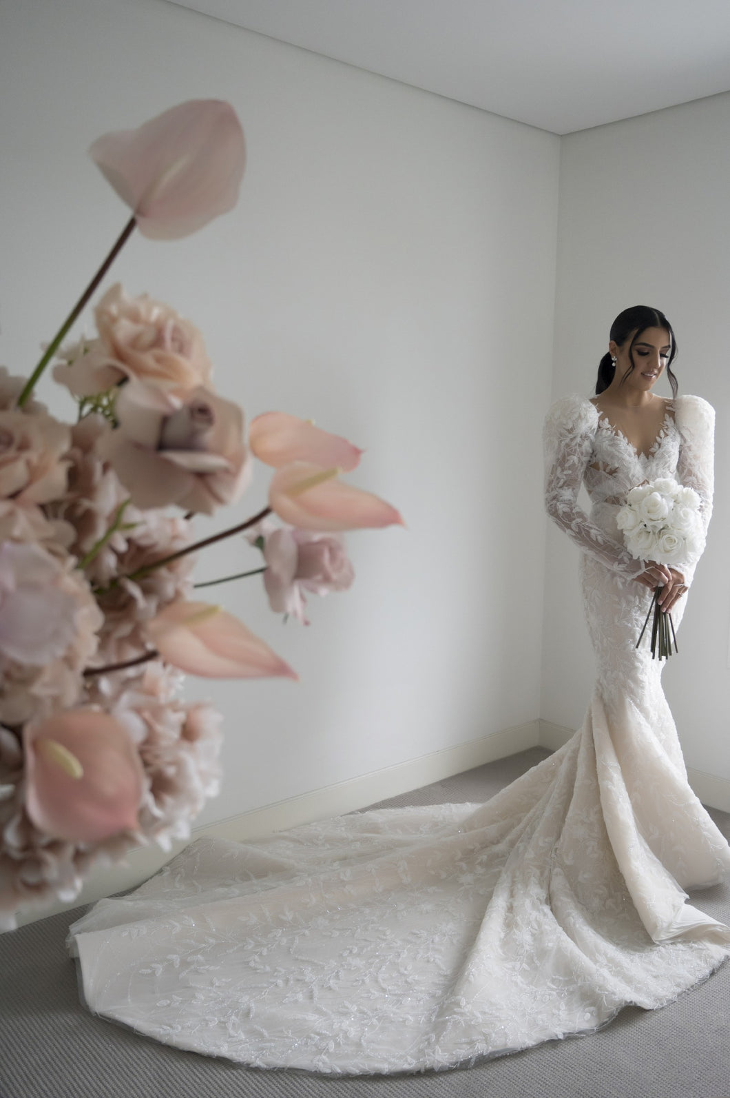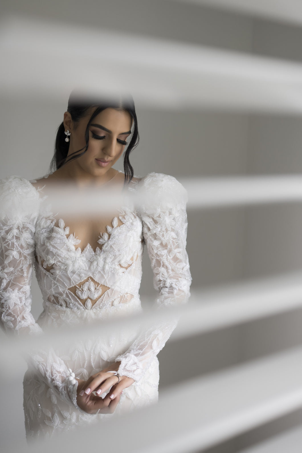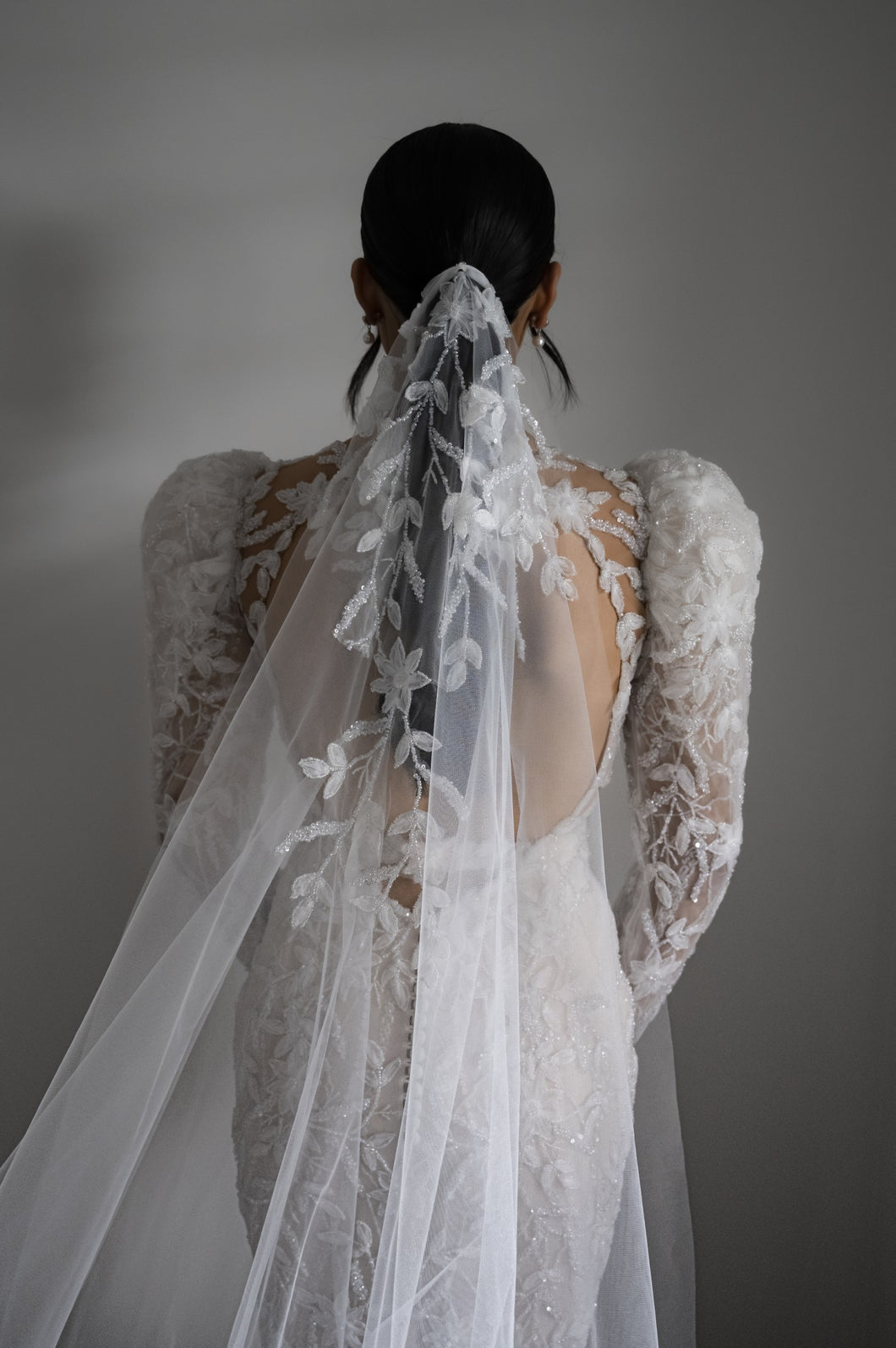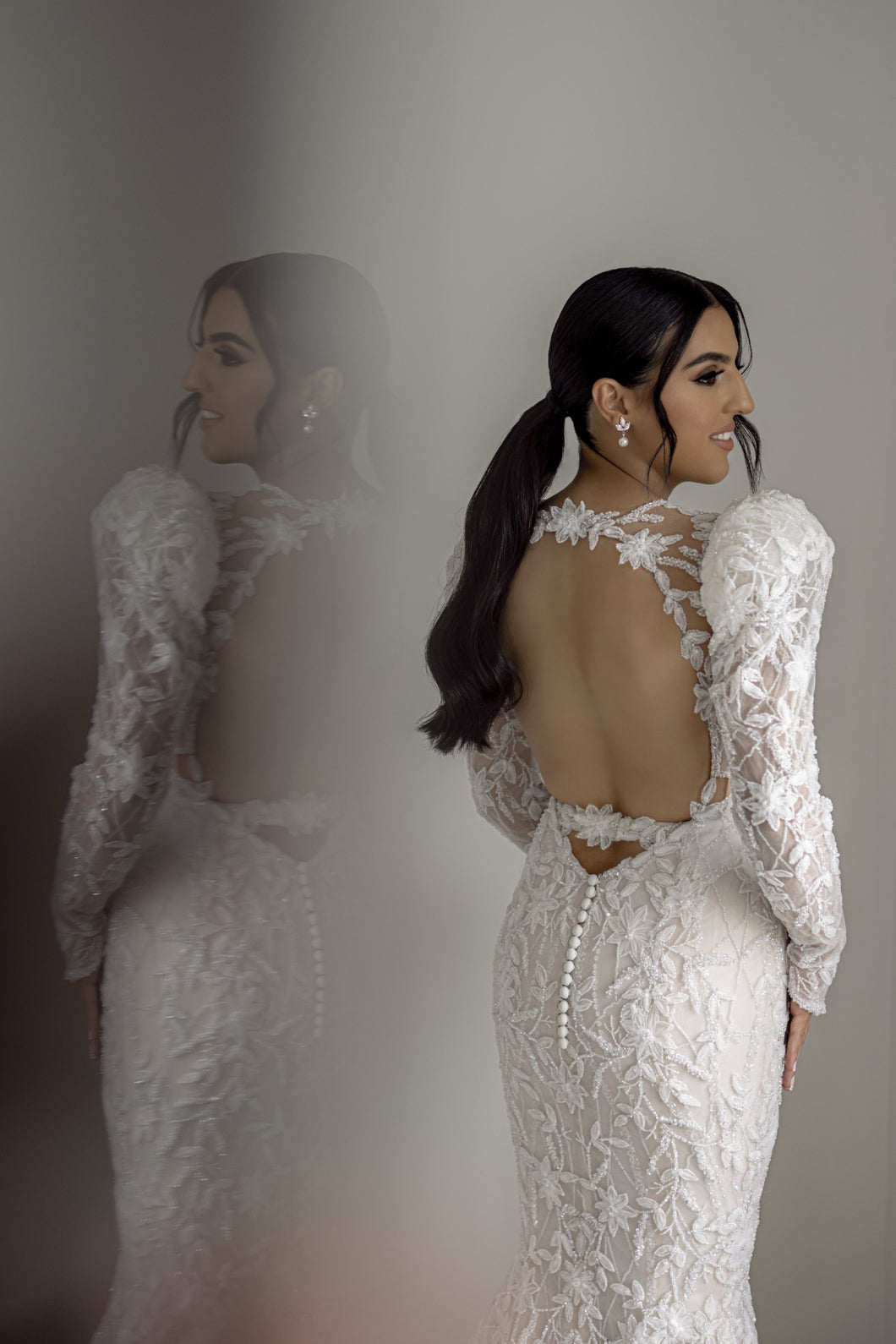 C2024-LSJ69 - backless long juliet sleeve wedding gown w v-neck