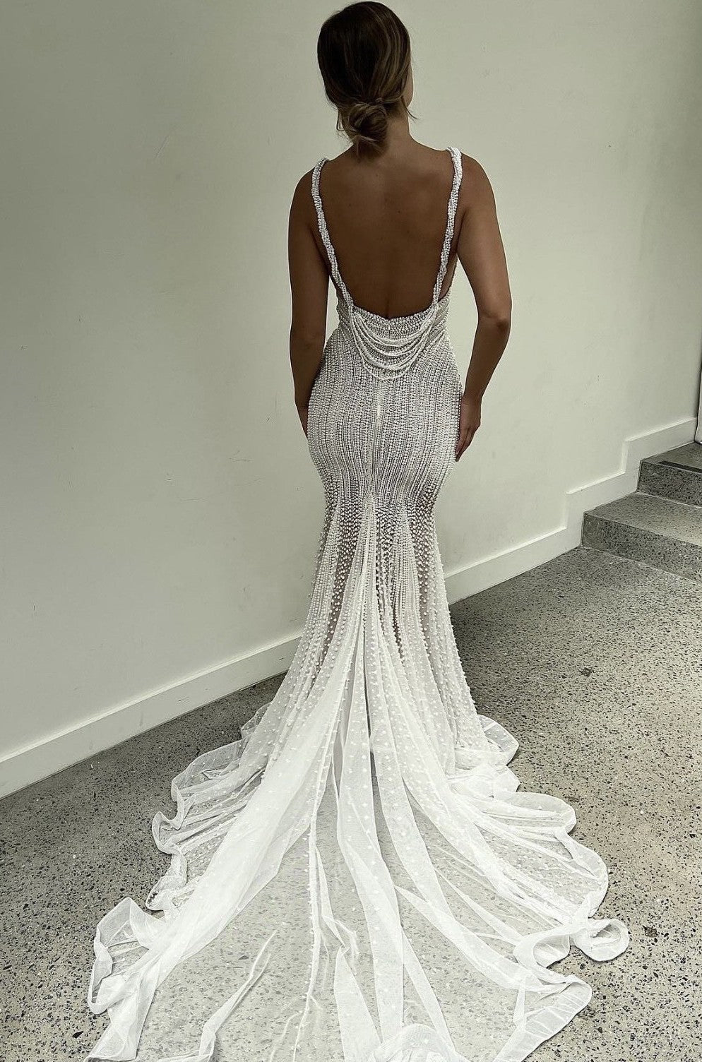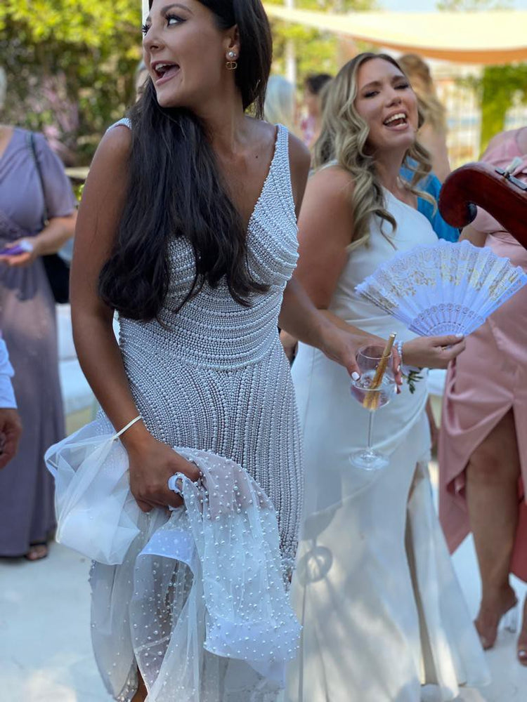 C2024-SB815 - pearl beaded sleeveless v-neck wedding gown