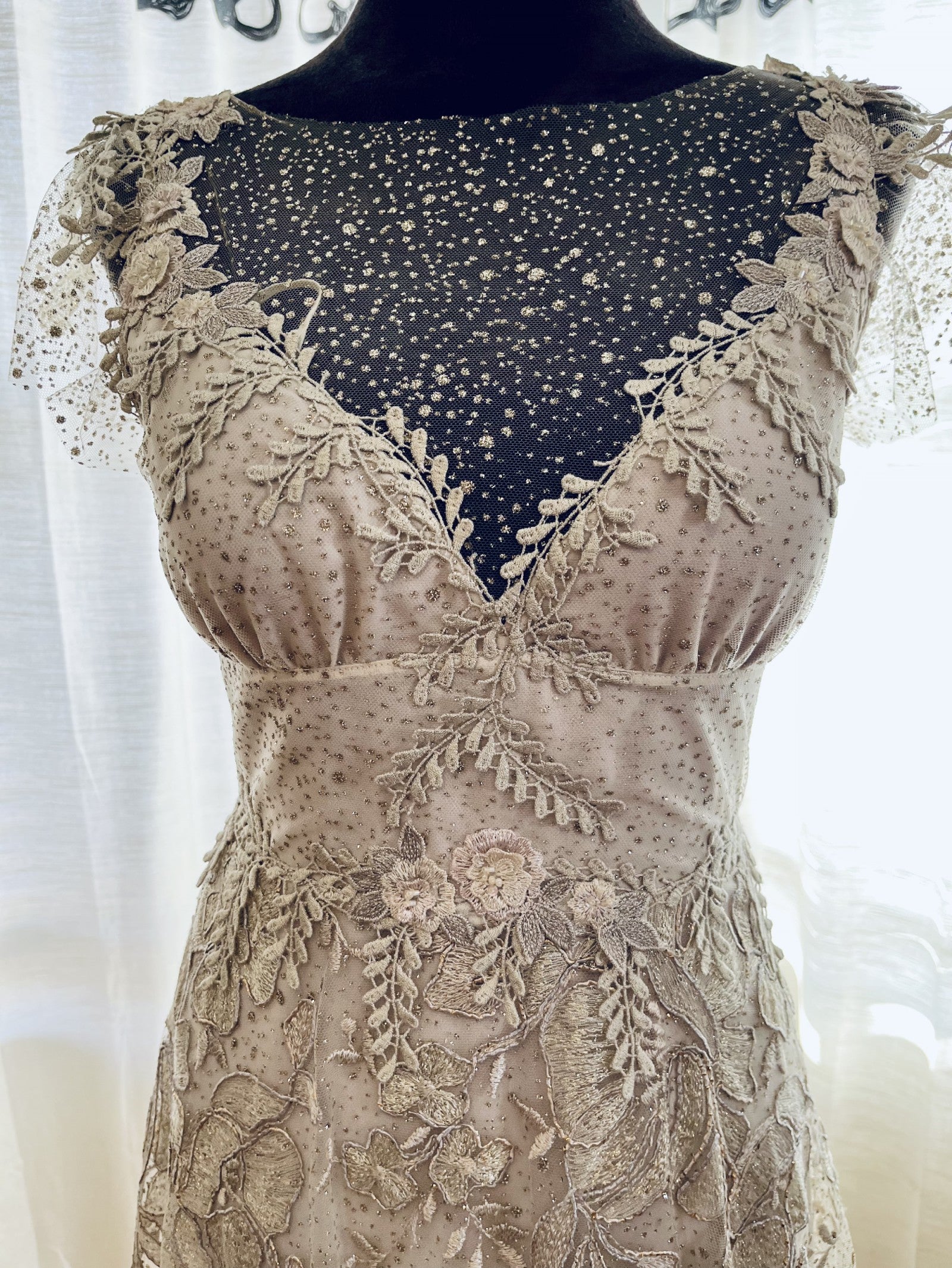 C2024-VE48 - cap sleeve vintage wedding gown with beaded embroidery & lace embellishments