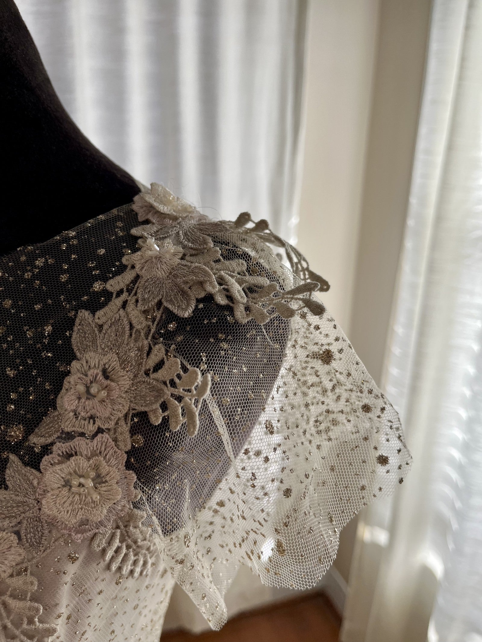 This exquisite C2024-VE48 wedding gown is a timeless beauty with delicate cap sleeves, intricate beaded embroidery, and elegant lace embellishments. Perfect for a vintage-inspired wedding, it effortlessly combines classic charm with modern elegance. Make a statement on your special day with this luxurious and exclusive piece.