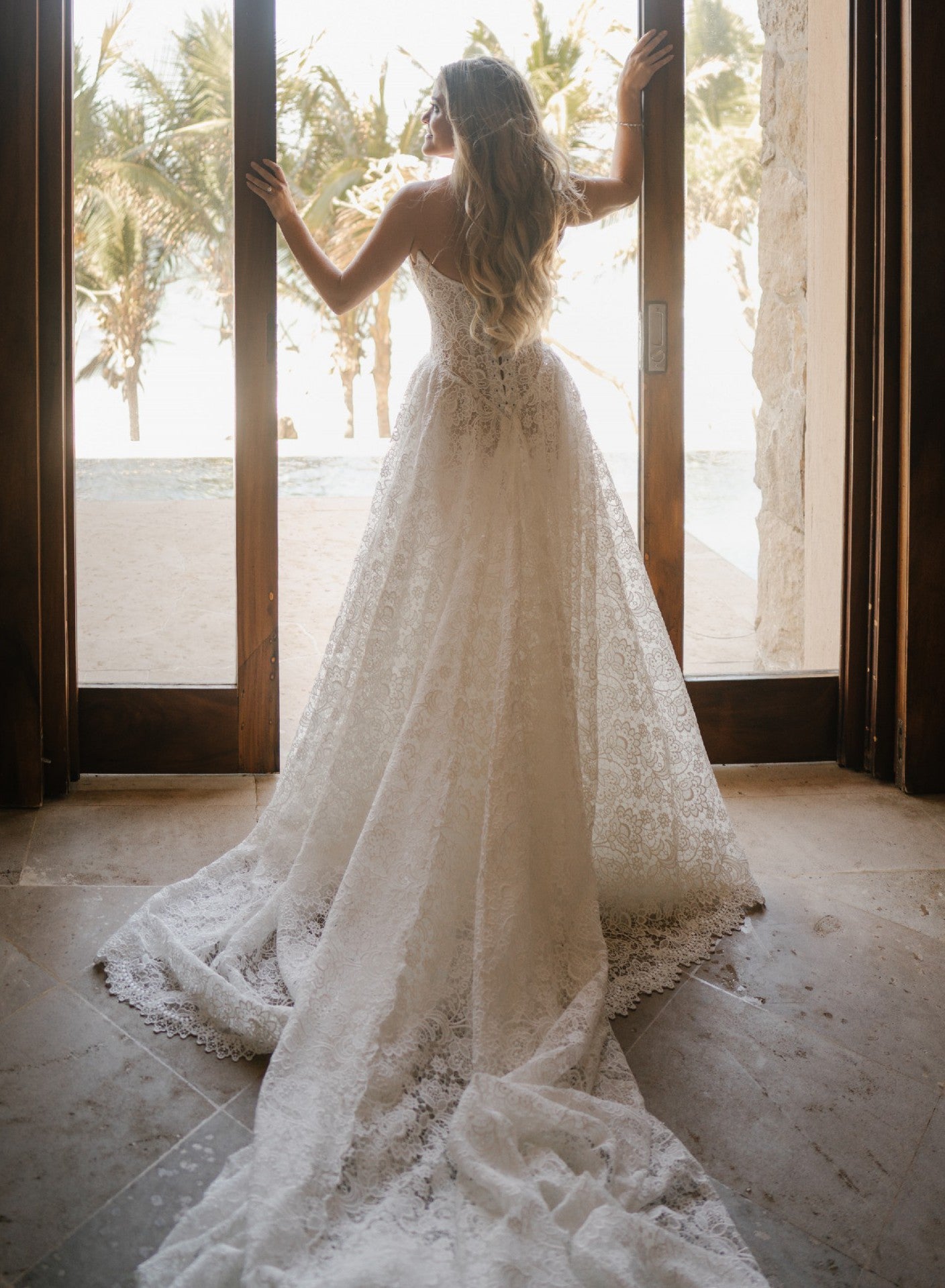 This strapless lace corset a-line wedding gown can be made with any changes.