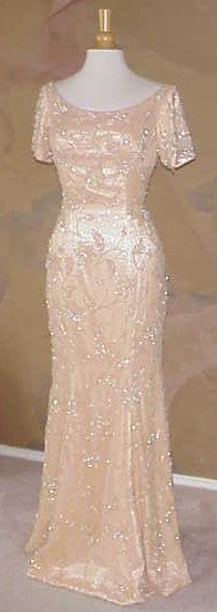 This pastel colored mother of the bride evening gown is in stock as shown in a size 10. It can be shipped immediately once payment is confirmed.