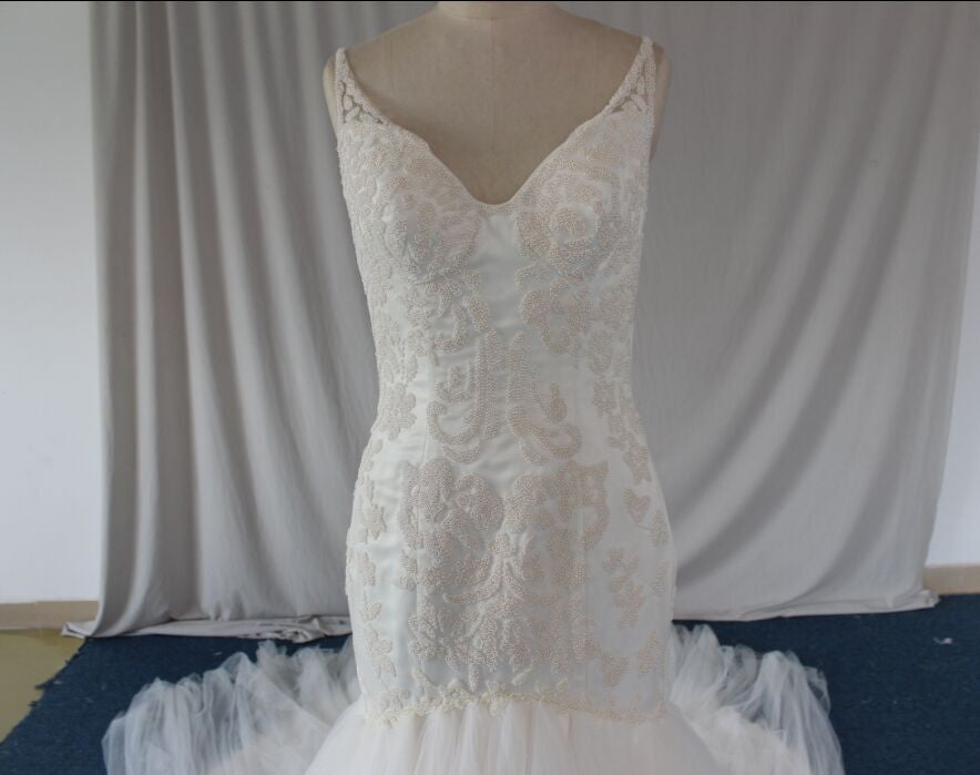 Indulge in luxury with our Style C2015Ali wedding dress. This Haute Couture inspired gown features a mesmerizing cowl neckline adorned with dangling pearl beads, adding a touch of elegance to your #special day. The open back design exudes sophistication and grace. Elevate your #weddingday with this premium piece.