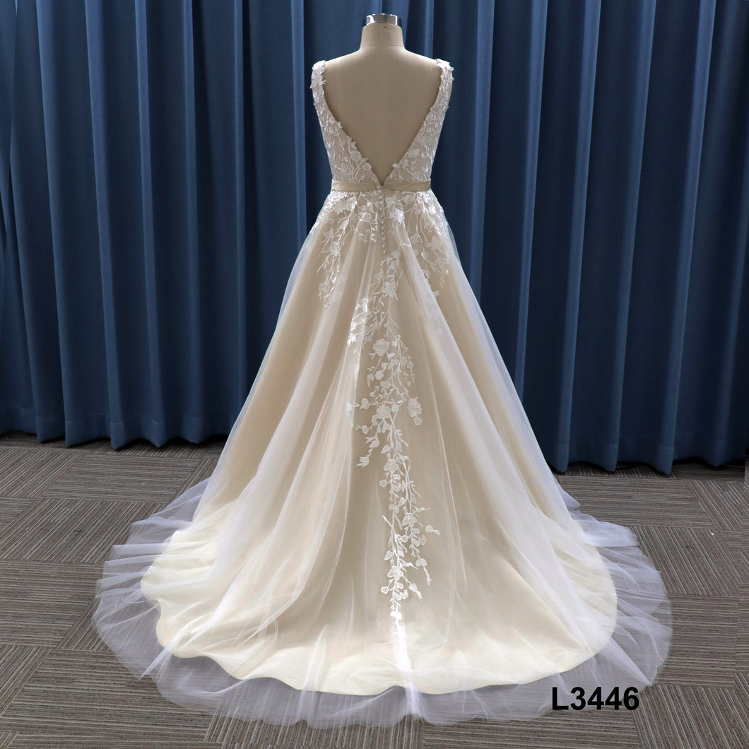 This a-line style wedding gown was made in a plus size. You can have your custom design made in any measurements you need. For more info on plus size wedding gowns please contact us directly.