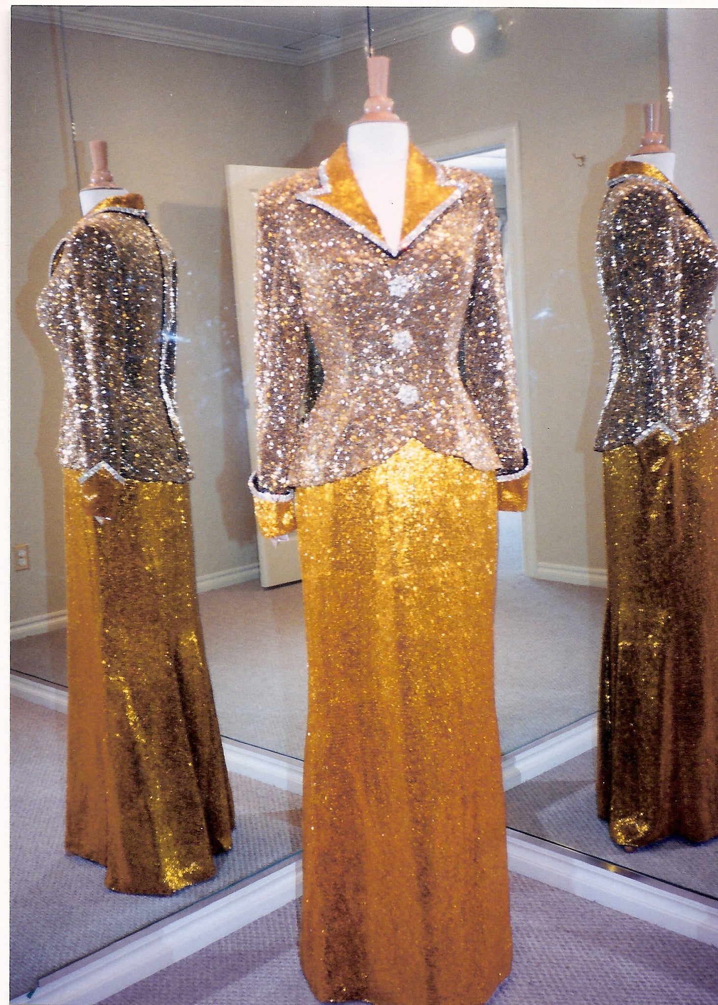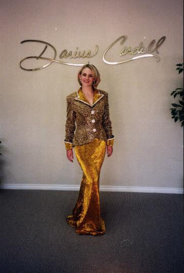 This Long sleeve Liquid beaded Pageant Gown by #Texas #designer Darius Cordell is in stock in a size 6.