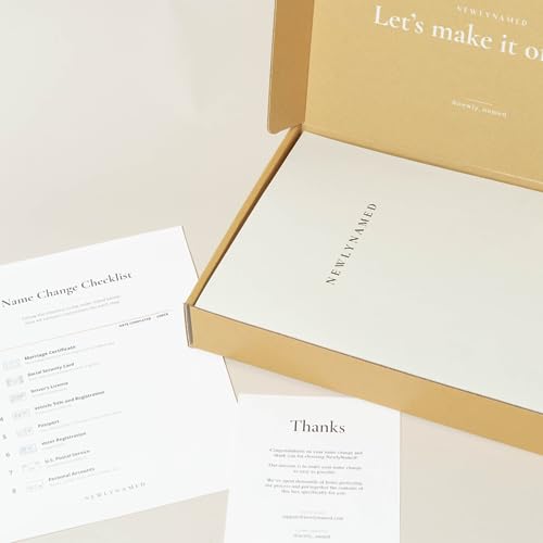 NewlyNamed Box GIFT CARD. Redeemable for a NewlyNamed Box - Personalized Name Change After Marriage Kit Note: If you would like to purchase a NewlyNamed Box for yourself, we recommend purchasing directly from our website. Includes applications and instructions for Social Security, U.S. Passport, Driver's License, Vehicle Title & Registration, Banks, Credit Cards, Travel Loyalty Programs, Professional Certifications, and much more. Perfect bridal shower and wedding gift! Works in all 50 U.S. states!