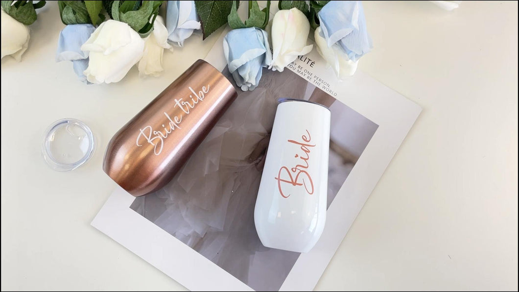 - Bride Tribe Wine Tumbler Gifts: Champagne Flutes set of 8,contains 1 Bride Champagne Tumbler and 7 Bride Tribe Champagne Tumblers. Our champagne flute tumbler is the cutest and practical wedding gifts tailored for bride and bride tribe.