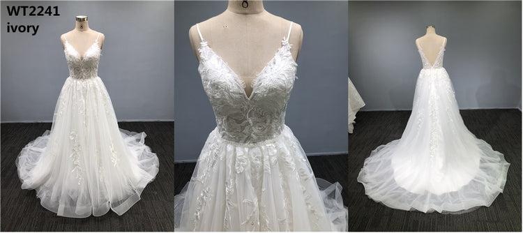 Get this spaghetti strap a-line wedding gown made to order with any #design changes you need.